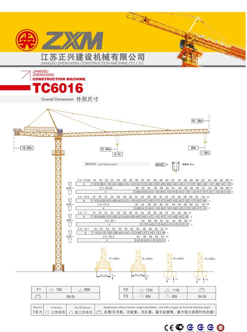 2、最大工作幅度60米,最大起重量8噸(dūn),末端最大起重量1.6噸(dūn),額(é)定起重力矩1250KN.M;