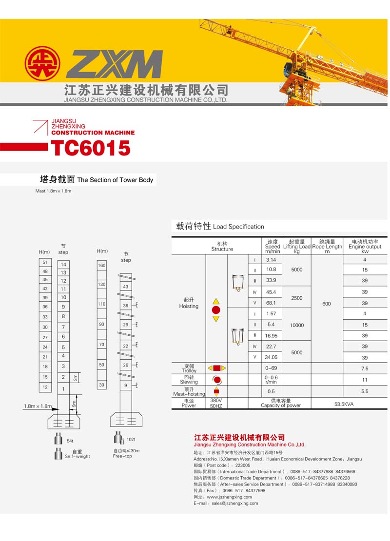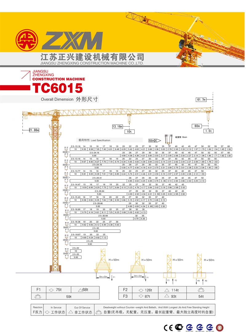 2、最大工作幅度60米,最大起重量8噸(dūn),額(é)定起重力矩1300KN.M;