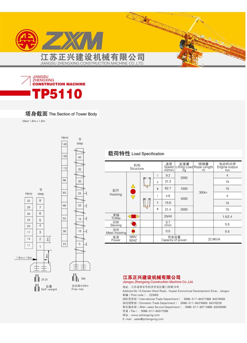 3、獨立高度32米,在採(cǎi)用外牆附著(zhe)方式時工作高度可達140 米;