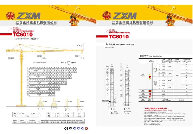2、最大工作幅度60米,最大起重量6噸(dūn),額(é)定起重力矩800KN.M;