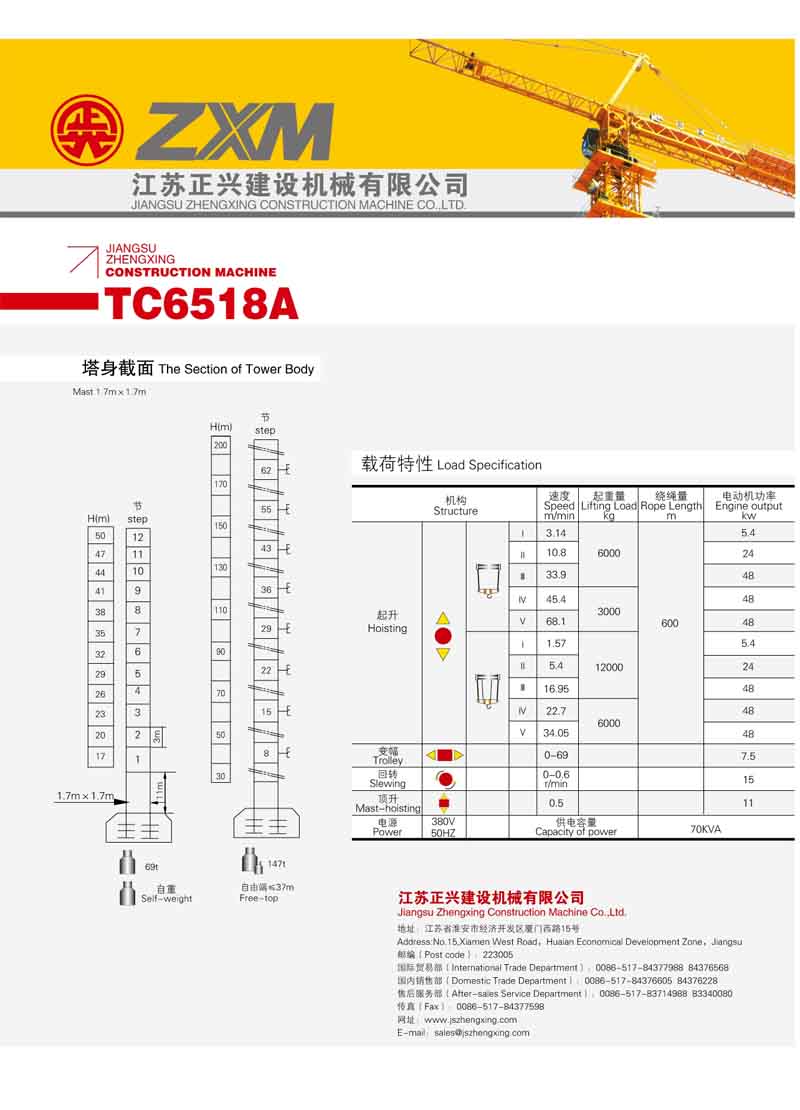 1、塔身採(cǎi)用高強度鋼材,附著(zhe)高度可達200米;标準節採(cǎi)用銷軸連接,安裝便捷穩固;12噸起重量;
