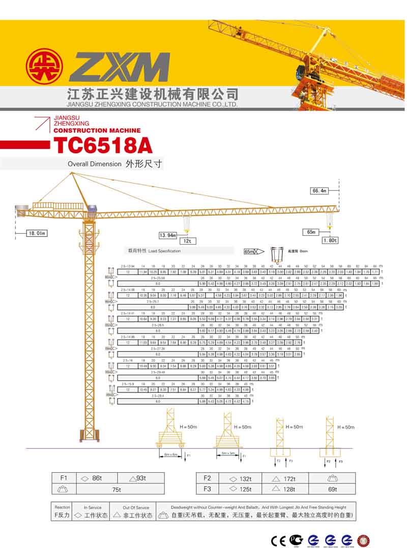2、最大工作幅度65米,最大起重量12噸(dūn),末端最大起重量1.8噸(dūn),額(é)定起重力矩1600KN.M;