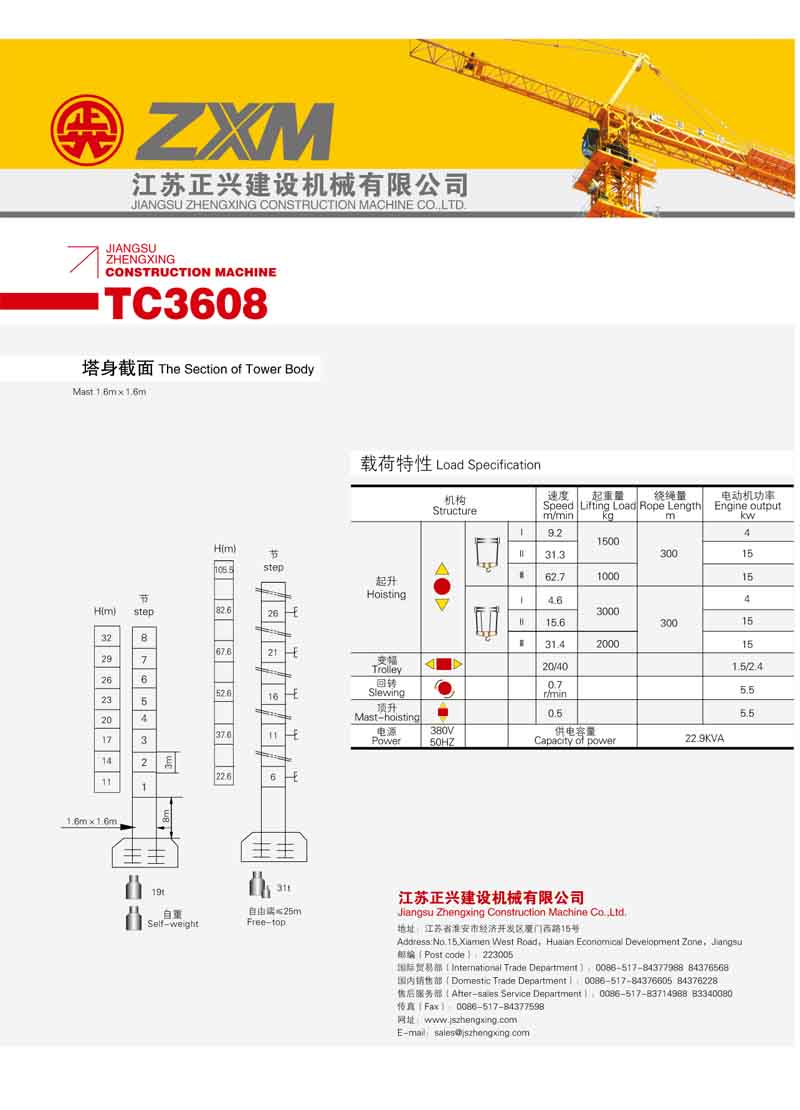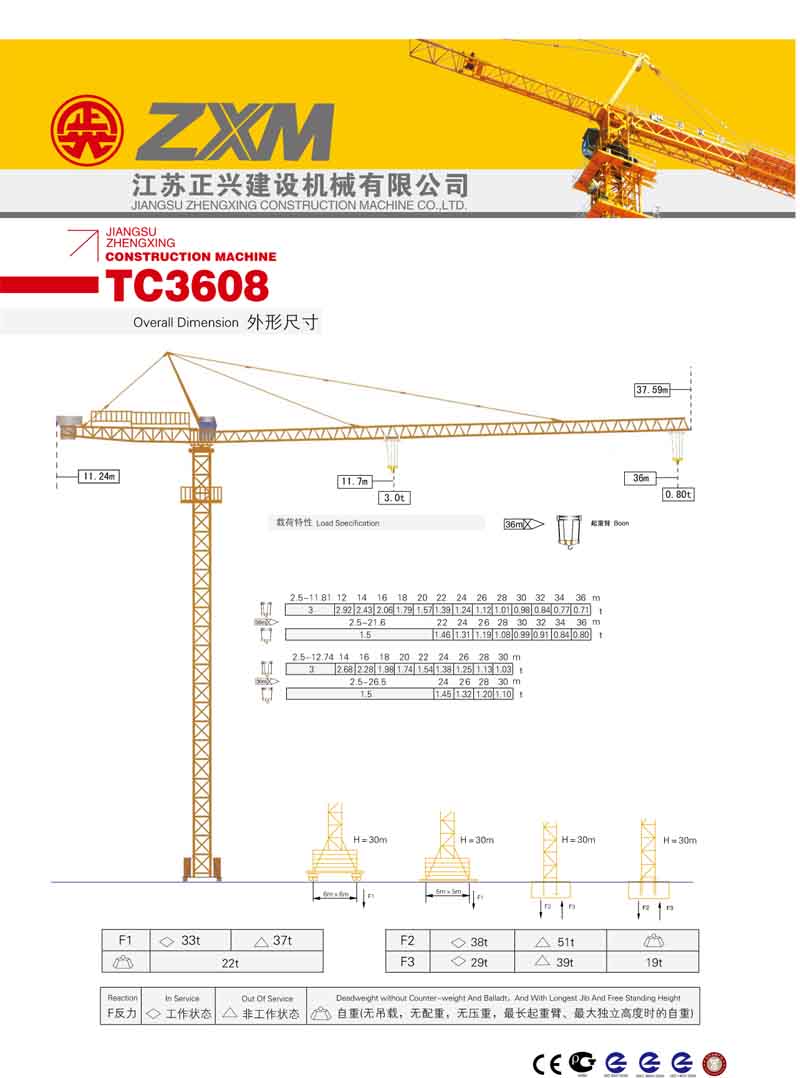 2、最大工作幅度36米,最大起重量3噸(dūn),額(é)定起重力矩300KN.M;